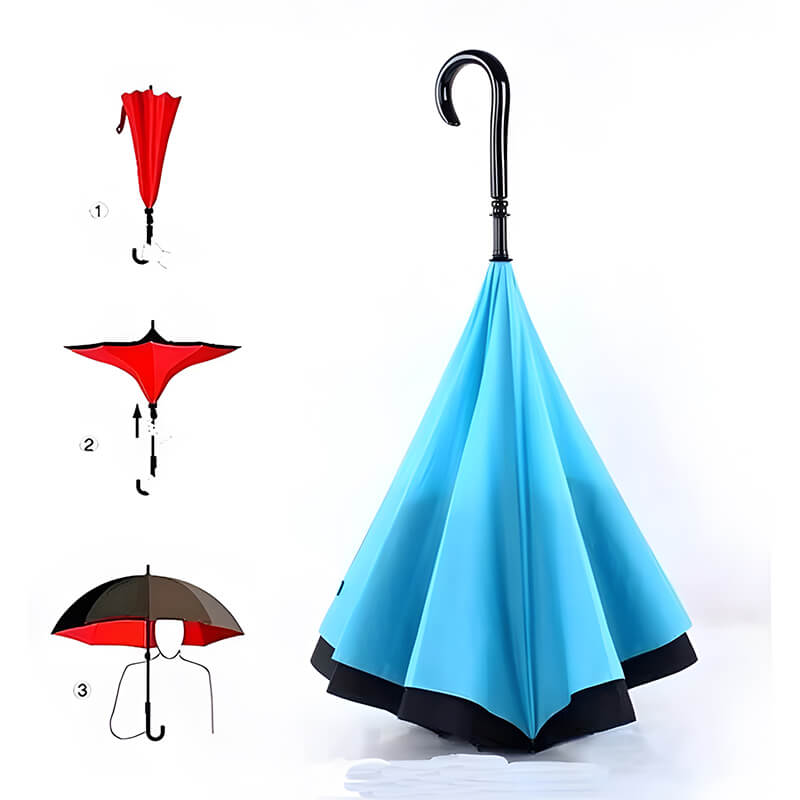 While the C-Handle reverse umbrella is popular, its shape can feel too casual for a business setting. The Model ET-A27R-JH solves this by equipping the revolutionary Inside-Out Folding Mechanism with a traditional J-Shape Handle. It offers the same “No-Drip” benefits for your car but maintains the classic silhouette of a high-end walking umbrella.