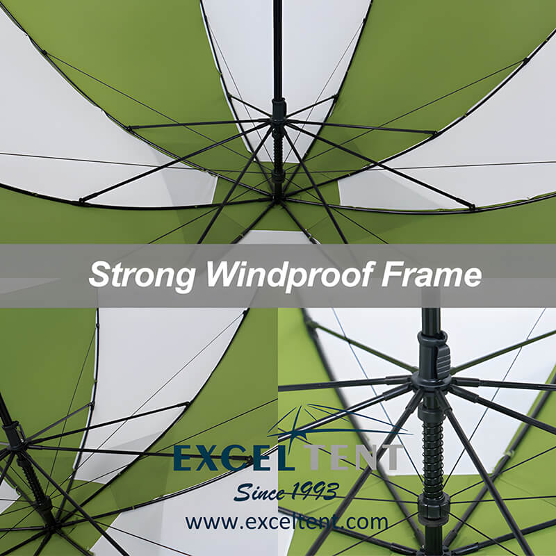 A solid color umbrella can be boring. The Hurricane Sport Series (Model ET-A20S-HSV) brings energy to the course with its eye-catching Two-Tone Alternating Panels. Whether you choose Green/White for the Masters vibe or Blue/White for your corporate identity, this umbrella ensures your brand stands out against the grey sky.