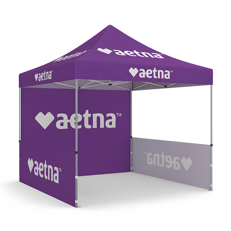 Need branding on a budget? The Simple Logo Print Canopy is the perfect solution. We print your company logo or website text directly onto the valance (the overhanging edge) of a stock-color tent. It’s fast, affordable, and professional.